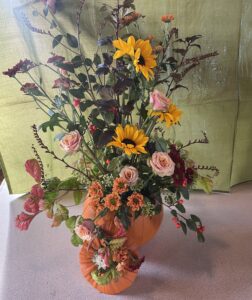 A few of the willow hoops and decorated pumpkins that were created by members, and visitors at a recent Harvest Workshop.
